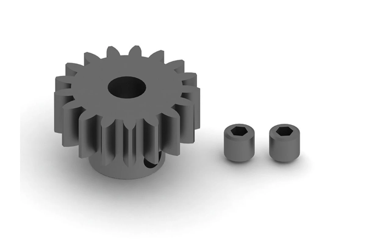 Strong and durable steel for long-lasting performance in extreme RC conditions – Precision manufactured tooth profile for smooth operation – Precision manufactured double set screw holes for the fitment of set screws either side of the motor shaft for extra secure fitting – For fitment to 5mm motor shaft