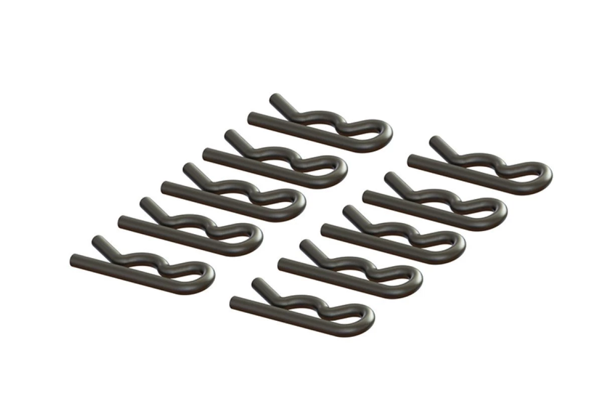 Strong steel material for long-lasting durability – Small size for reduced snagging on debris when driving in extreme conditions – 10 per pack so you always have spares – Black colour for cool looks with any Body Shell trim scheme – 17mm overall length – 1.4mm diameter, used with 1.6mm diameter Body Shell Post holes