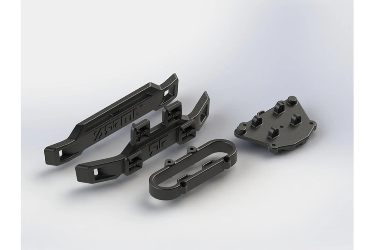 Super-tough composite material for long-lasting vehicle protection and increased impact resistance – Supplied with front bumper absorption loop to assist in soaking-up collisions – Front bumper has mounting clips for the addition of aftermarket headlight sets – Moulded ARRMA logos for cool looks and quality assurance on front and rear bumper