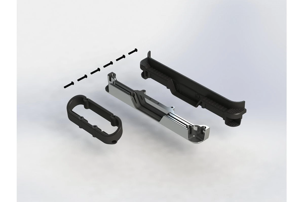 Super-tough composite material for long-lasting vehicle protection and increased impact resistance – Black chrome bumper provides awesome scale looks – 2 piece bumper consists of black chrome plated outer part mounted to composite finish part – Includes bumper spring – Fittings included