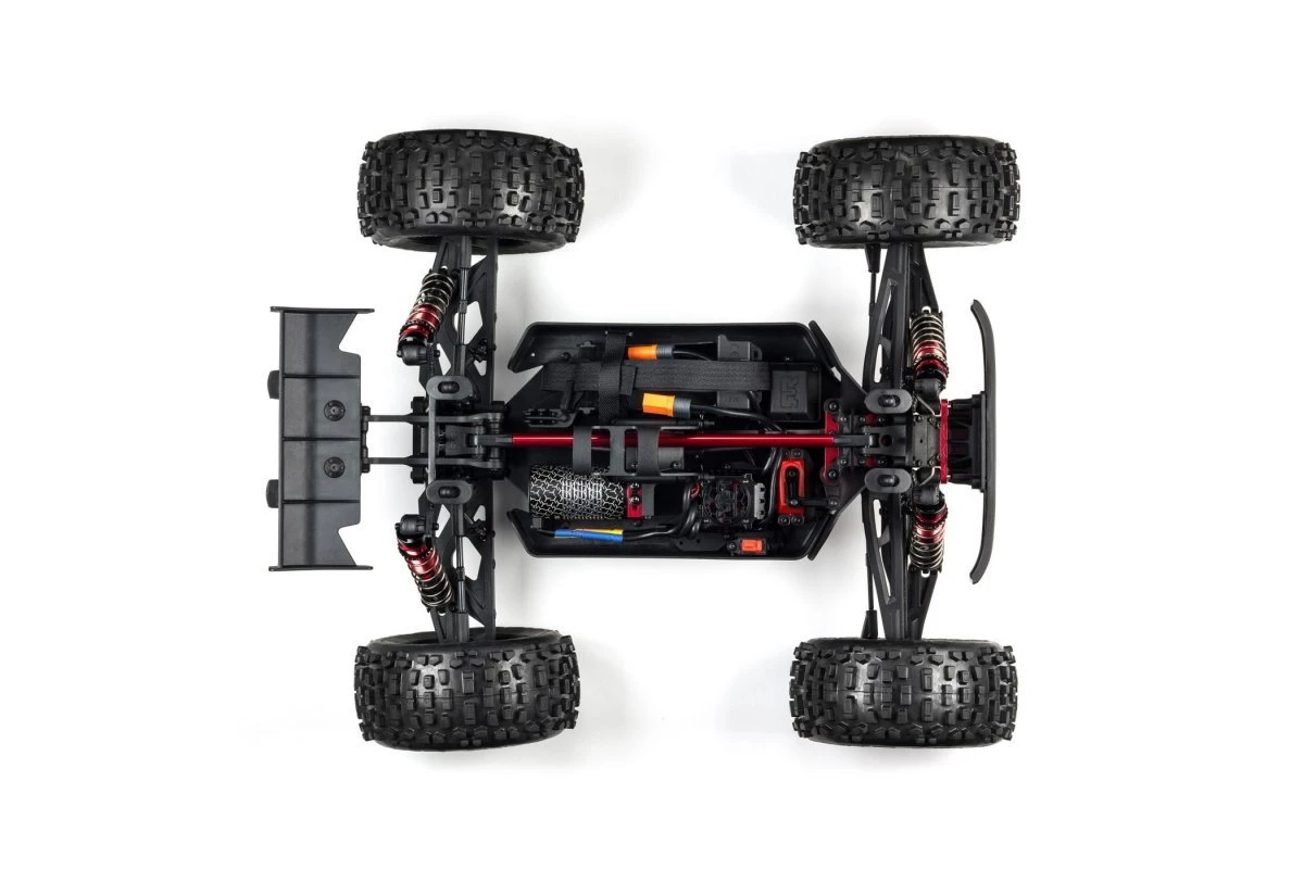 Looking to do some crazy stunts and drive up to unbelievable speeds, then the ARRMA NOTORIOUS BLX V4 is for you! Equipped with a 2050KV BLX brushless motor that can handle not one, but two 11.1v LiPo batteries which combined will deliver 22.2 volts of raw power. With great power comes great driveline components and that’s exactly what ARRMA has installed, 6 steel drive shafts!