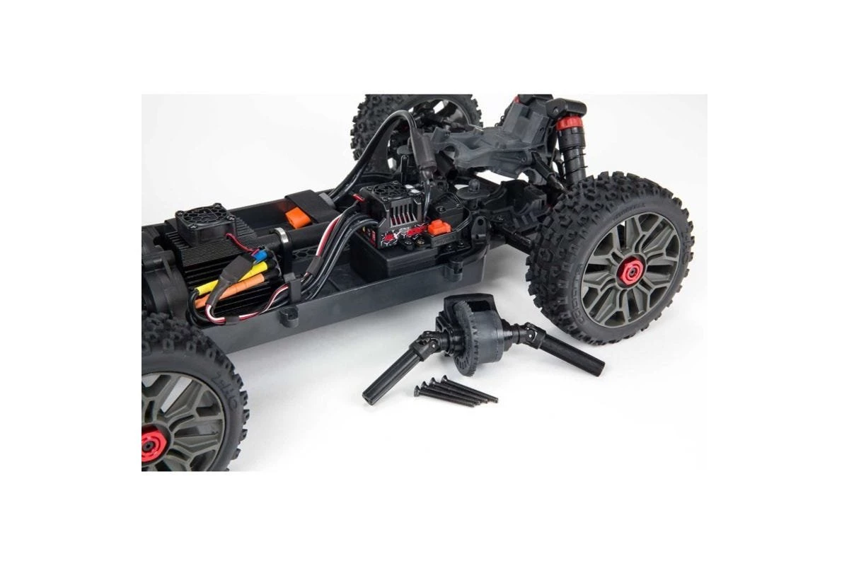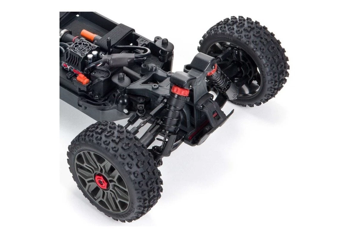 Making your move into brushless 1/10 scale Speed Buggy action has never been easier. Fast, rugged and factory-built, the 3S LiPo-compatible ARRMA® TYPHON™ 4X4 3S BLX RTR comes ready out of the box to bash on any terrain. Precision aluminum, tough steel and composite materials come together for an easy-to-maintain, super-durable vehicle design whose high downforce wing and low center of gravity, with wide arms and narrow wheels and tires, improve handling over race tracks, trails, muddy courses, skate parks and more. This version features new equipment that further increases the original buggy’s already impressive performance and durability.