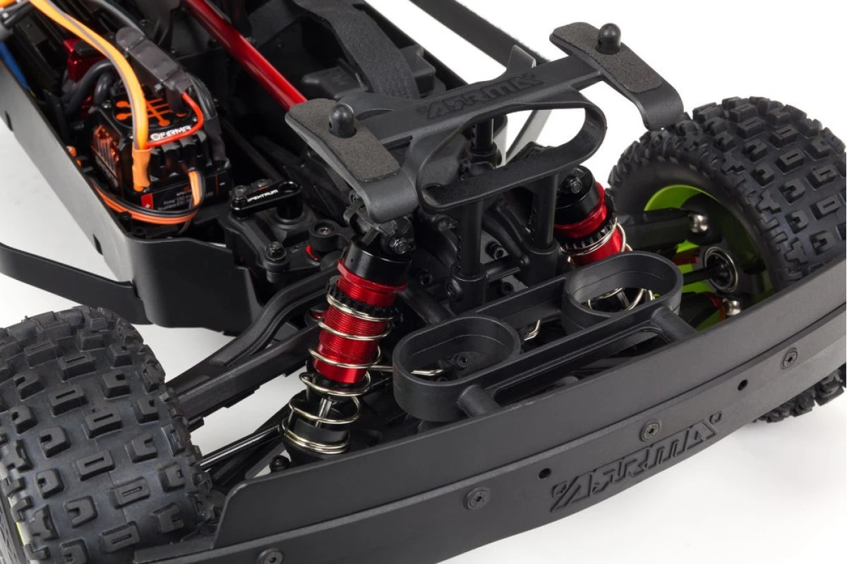 - Heavy-duty suspension arms with red-anodized aluminium strengthening cap
