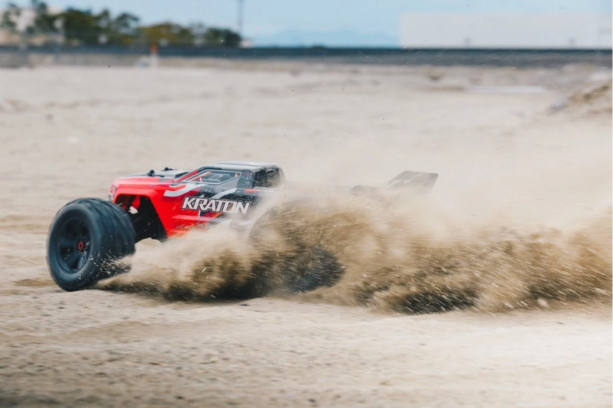 The ready-to-run ARRMA® KRATON™ 6S BLX 4WD Speed Monster Truck now comes equipped for even greater all-terrain, 1/8 scale bashing thrills — with a Spektrum™ SLT3™ 3-channel radio, SLT™/DSMR® dual protocol receiver, Smart ESC, stronger servo and more.