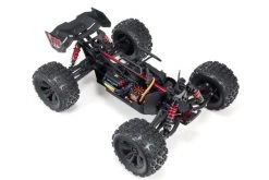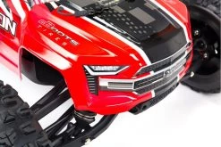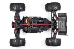 ARRMA® holds your maintenance downtime to the minimum with an efficient, driver-friendly design. A sliding mount allows quick, hassle-free motor access. The centre diff is easy to reach and can be removed by taking out just five bolts. Topping it all off is a monster truck body with streamlined good looks, featuring an eye-catching red/black or blue/black trim and detailed decals.