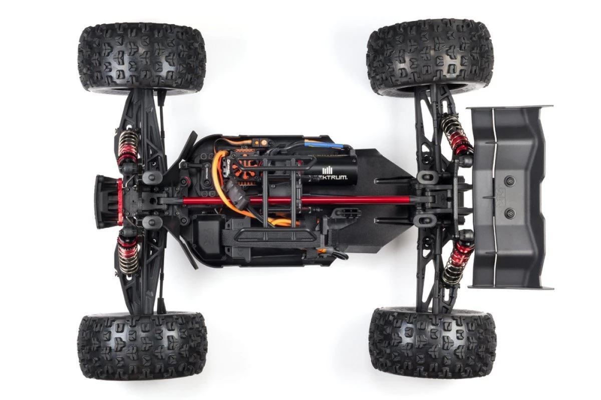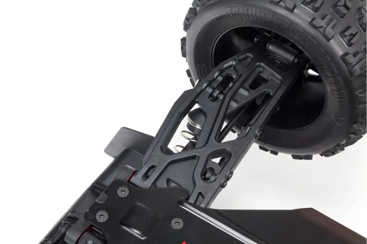 Looking to do some crazy stunts and drive up to unbelievable speeds, then the ARRMA Kraton V5 BLX is for you! Equipped with a Spektrum Firma 4074 2050KV brushless motor that can handle not one, but two 11.1v LiPo batteries which combined will deliver 22.2 volts of raw power. With great power comes great driveline components and that’s exactly what ARRMA has installed, 6 steel drive shafts!