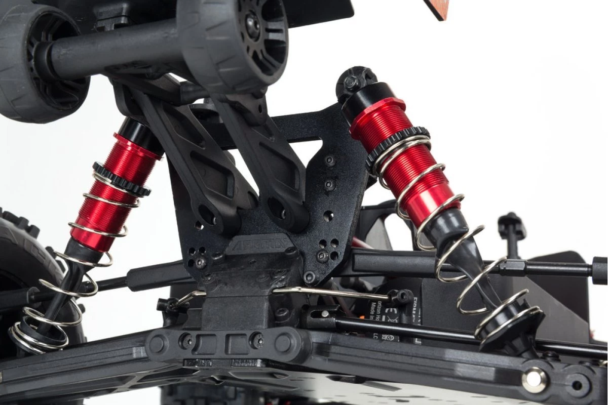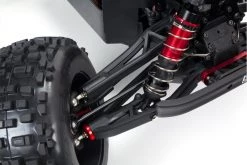 Looking to do some crazy stunts and drive up to unbelievable speeds, then the ARRMA NOTORIOUS BLX V5 is for you! Equipped with a Spektrum Firma 2050KV BLX brushless motor that can handle not one, but two 11.1v LiPo batteries which combined will deliver 22.2 volts of raw power. With great power comes great driveline components and that’s exactly what ARRMA has installed, 6 steel drive shafts!